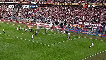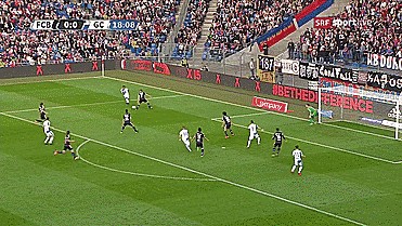 Erste Halbchance der Bebbi. Nach einer Ecke können sich die Basler den Ball ergattern und Breel Embolo versucht den Ball in den nahen Ecken zu schieben. Das Ledeer landet aber im Aussennetz.