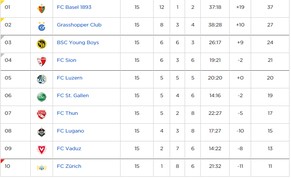 So präsentiert sich die Tabelle nach diesem Spiel. Welch Wunder: Basel grüsst immer noch mit viel Vorsprung vom Leadertrohn.