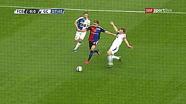 Nun sieht auch noch Barthe gelb. Seine Grätsche etwas übermotiviert. Er muss neben der gelben Karte und der Sperre im nächste Spiel auch noch hundert Mal an die Wandtafel schreiben: «Ich darf keine Spieler von hinten umgrätschen. »