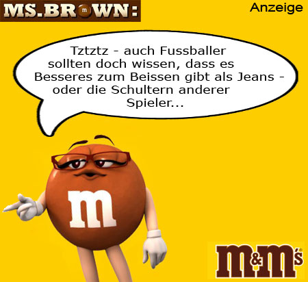 Okay, einen Spruch muss Suarez wegen seiner Beissattacke jetzt noch ertragen. Der liegt aber auch sooo auf der Hand