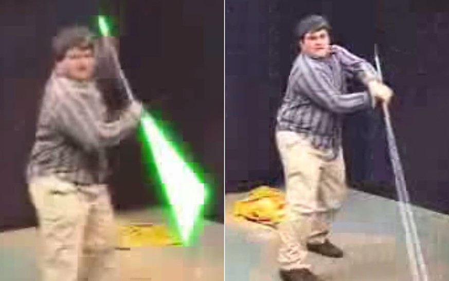 Einmal mit und einmal ohne Laserschwert.screenshot: youtube/jim love