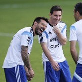 Hier macht Argentiniens Lavezzi seinen Trainer nass und Nigerias Onazi bricht seinem Mitspieler den Arm