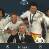 Hier stürmen die Real-Stars die PK ihres Trainers