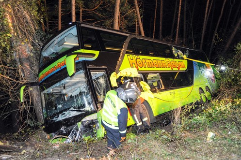 Reisecar ohne Passagiere Böschung hinuntergestürzt