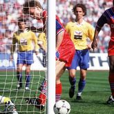 Kahn knabbert an Herrlich und fliegt in Kung-Fu-Manier auf Chapuisat zu