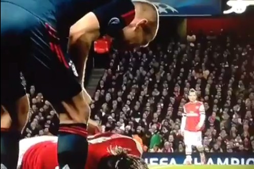 Hat Robben seinen Gegner hier angespuckt oder ist die schweissige Glatze schuld?
