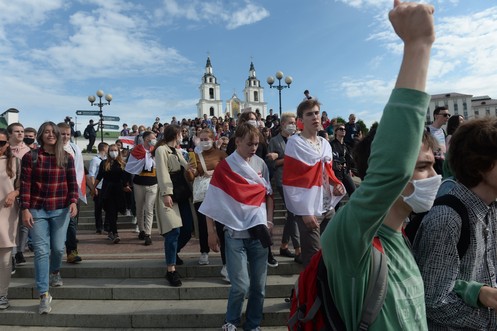 Zehntausende in Minsk trotzen Lukaschenkos Truppenaufmarsch und Putins Drohung