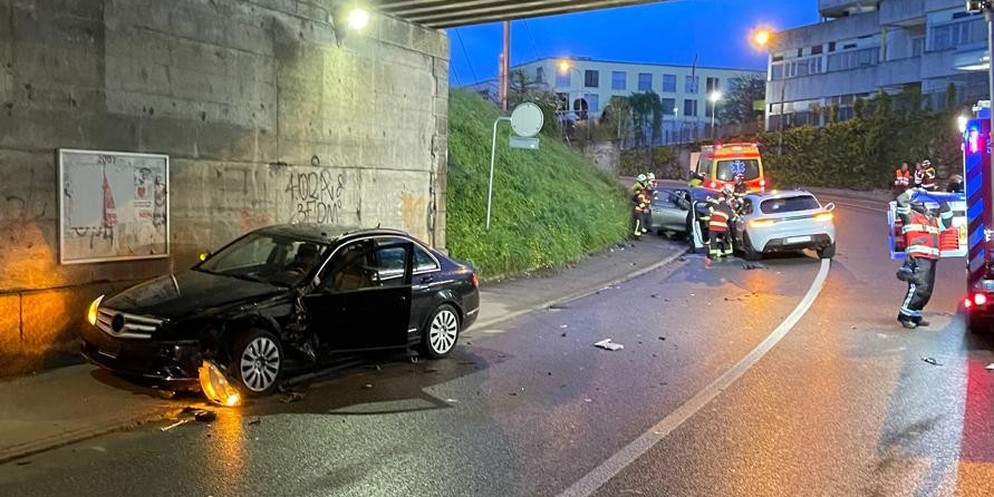 Ein Fahrzeuglenker war auf der besagten Strasse stadtauswärts unterwegs, als er aus unbekannten Gründen in einer Unterführung auf die Gegenfahrbahn geriet. Das Auto kollidierte mit einem entgegenkommenden Fahrzeug, fuhr weiter und kollidierte im Anschluss frontal mit einem zweiten, entgegenkommenden Fahrzeug. Danach kam es zum Stillstand.