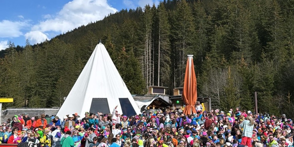 «Der Tag verlief gar nicht wie geplant», erklärt Mitorganisator Yannick Brunner. Vorgesehen gewesen wäre, dass der Event bei der Grand Masta Bar beim Snowpark inmitten des Skigebiets stattfindet. Die Organisatoren hatten am Vortag dort schon alles für den Anlass installiert. Aufgeben war keine Option: «Der Old School Day findet bei jedem Wetter statt», so Brunner. Das Team schwenkte kurzfristig um und verlegte die Party ins Tal zur Mittelstation der Sillerenbühlbahn «Bergläger». Die Stimmung liess sich das Partyvolk nicht verderben, wie Bilder zeigen: «Es war trotz allem eine mega coole Party», bilanziert der Mitorganisator nach dem Fest.