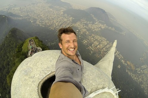 Nein, das ist kein Apple-Angestellter, der da oben auf der Christus-Statue herumturnt