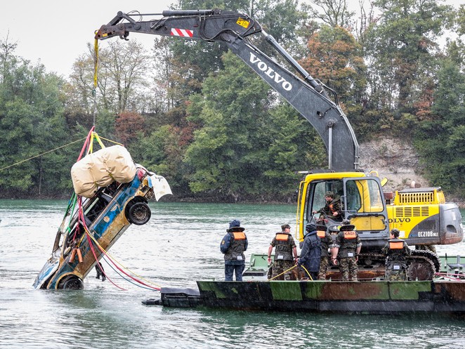Deutsches Polizeiauto aus dem Rhein geborgen