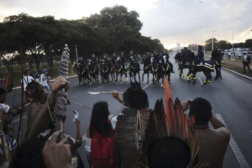 Indianer schiessen Pfeile auf Polizisten – diese setzen Tränengas ein
