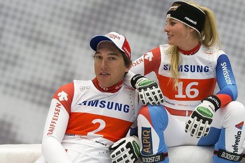Auf der Piste hat Carlo Janka alle nass gemacht, doch beim «Vogel-Lisi» hat Kostelic die Nase vorn