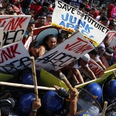 Knall auf den Philippinen: Polizei setzt bei Demonstration Wasserwerfer ein