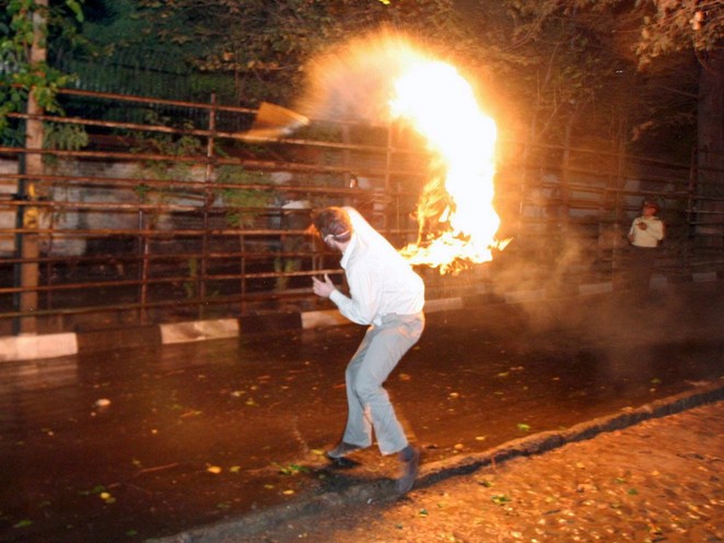40 Neonazis skandieren mit brennenden Fackeln Parolen vor Asylheim