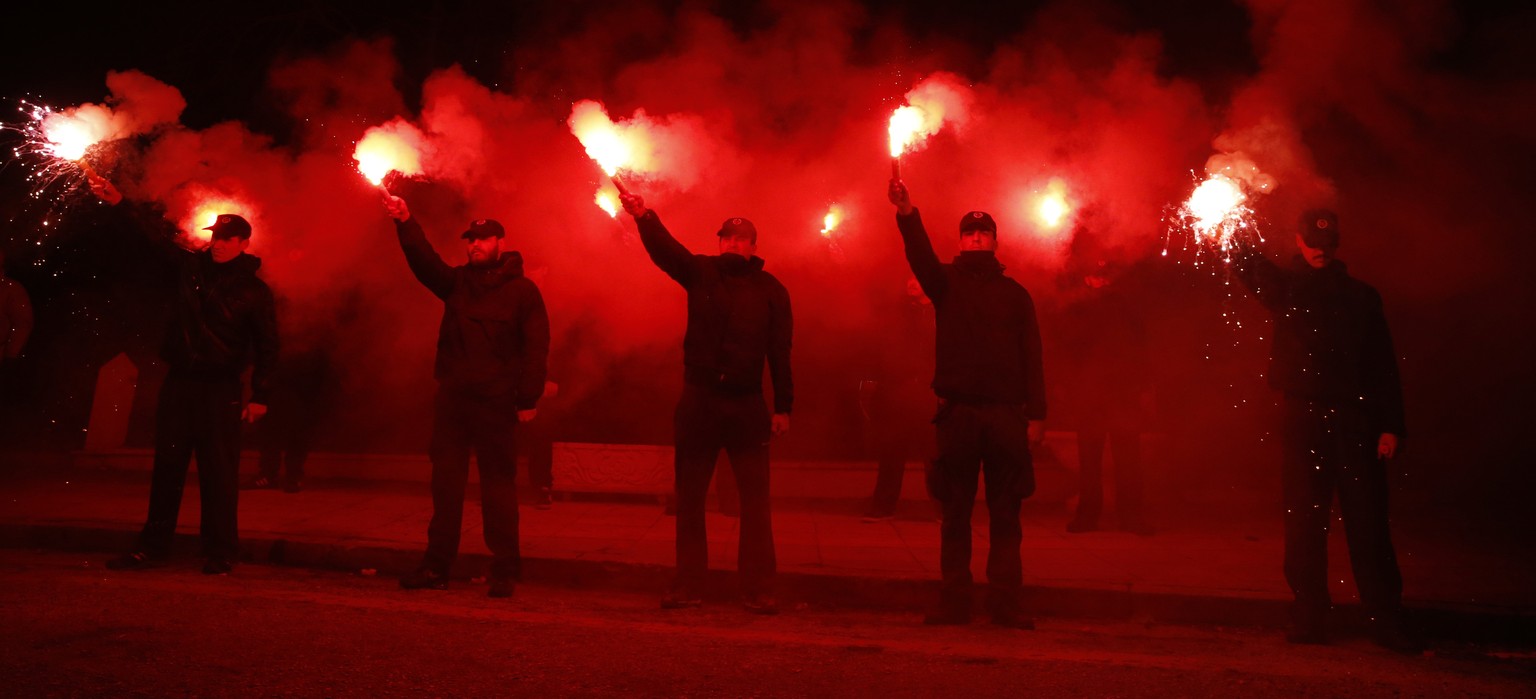 40 Neonazis skandieren mit brennenden Fackeln Parolen vor Asylheim