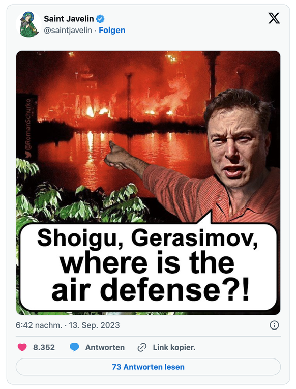 Nach dieser Darstellung und den derzeit verfügbaren Informationen hat Musk den ukrainischen Raketenangriff also nicht aktiv gestoppt, sondern durch Unterlassung verhindert. An den tragischen Folgen – nämlich der Fortsetzung des russischen Raketenterrors gegen die ukrainische Zivilbevölkerung – änderte das nichts. Zumindest vorläufig nicht.