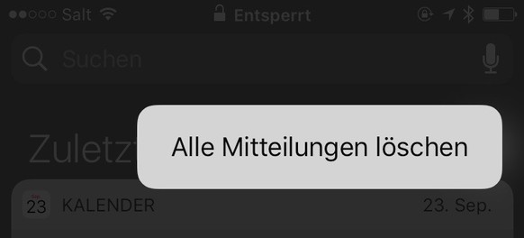 Man klickt auf dem Sperrbildschirm auf das x und drückt dabei etwas länger und fester zu, worauf die Option angezeigt wird, man könne «Alle Mitteilungen löschen».
