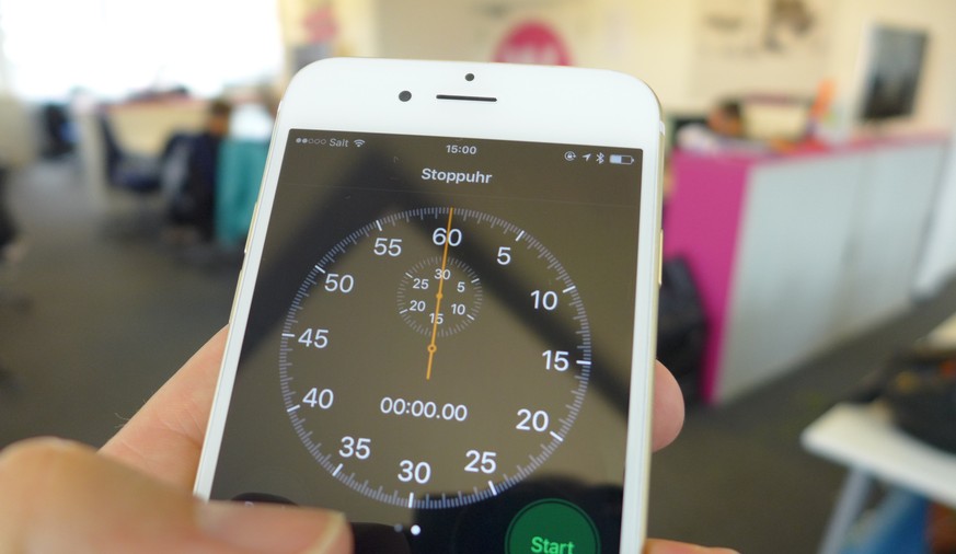 Wer mit der «Uhr»-App die Zeit stoppt, kann eine andere Anzeige auswählen. Einfach nach links wischen ...