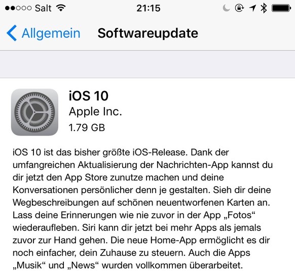 Wer in den Vorjahren iOS 8 und iOS 9 als Update installiert hat, sollte das volle «Wellness-Programm» ins Auge fassen (Backup erstellen, «Einstellungen» zurücksetzen, iOS 10 neu installieren). Dazu das Apple-Fachmagazin Macwelt.de: