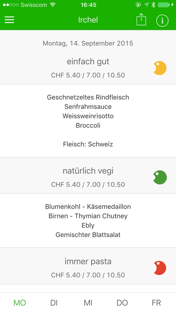 Besonders jetzt zum Semesterstart bin ich gespannt, wie die App von den neuen Studenten angenommen wird. Die App gibt's ja kostenlos für iOS und Android. Doch erst kürzlich habe ich ‹Züri Mensa Premium› als In-App-Kauf lanciert. Für weniger als den Preis eines Kaffees kann man mich unterstützen und erhält dafür exklusive Zusatzfunktionen.