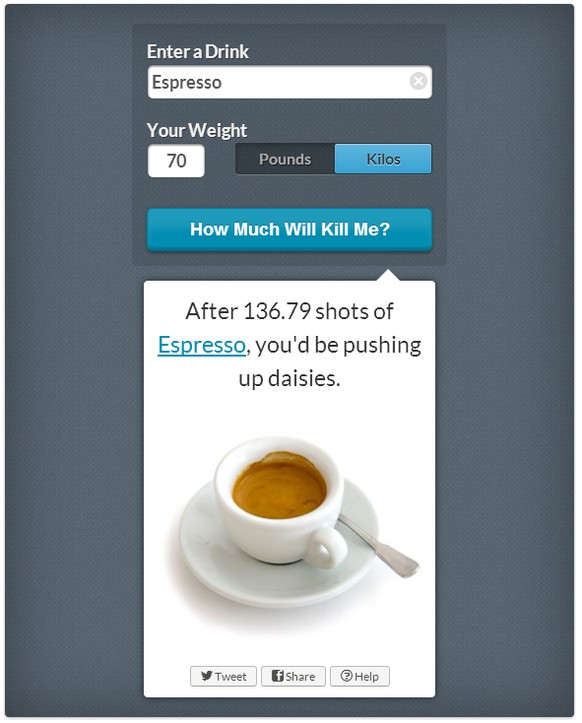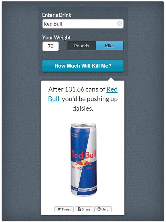 Wie viel Kaffee, Cola oder Red Bull verträgt es, bis es lebensgefährlich wird? Auf der Website Death by Caffeine kann man dies für sein eigenes Körpergewicht ganz einfach selbst berechnen. Ein paar Beispiele: