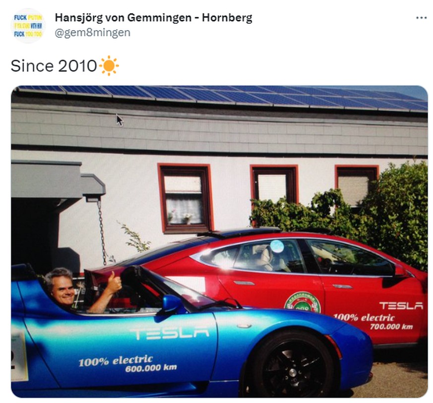 Ausserdem glaubt Gemmingen-Hornberg mittlerweile, dass Musk mit seiner Vision des Umweltschutzes die Fans nur geblendet habe – und vorrangig an Geld interessiert gewesen sei. «Aber vielleicht hat Musk schon früher so getickt und jetzt offenbart er sich immer mehr.»