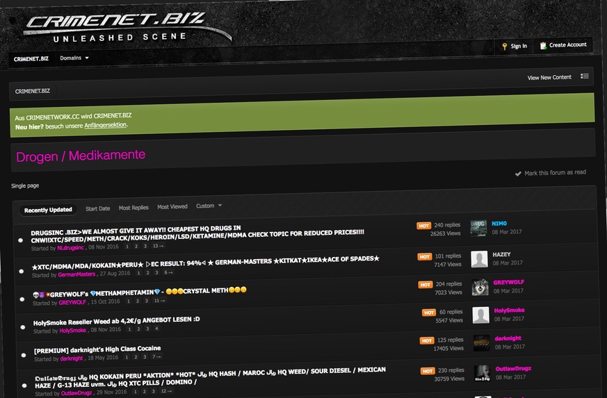 In dem angeblich grössten deutschsprachigen Untergrund-Forum tummelten sich auch viele Betrüger – in der Szene «Scammer» genannt – und mancher minderjährige User. Die Forums-Seiten waren über das Darknet und das Clearweb erreichbar.