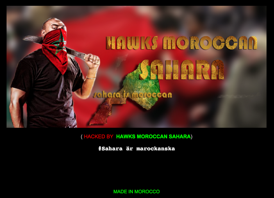 Für den Angriff verantwortlich zeichnen die «Hawks Moroccan Sahara». Die nordafrikanischen «Falken» betreiben eine öffentliche Facebook-Seite. Dort vermeldeten sie am Mittwochabend den Hack.