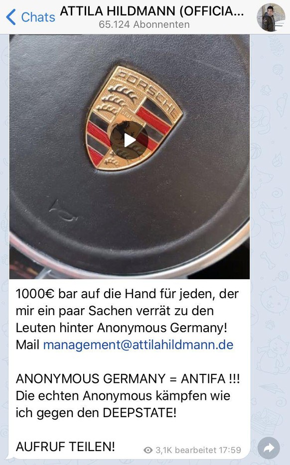 Anonymous kündigt weitere Aktionen gegen den früheren TV-Koch Attila Hildmann an. Dieser hat sich während der Corona-Krise vom Vegan-Influencer zum antisemitischen Verschwörungsideologen gewandelt, der hinter Covid-19 eine Kampagne der Eliten und Staatsoberhäupter sieht, um die Bevölkerung zu dezimieren. Zuletzt hat er sich weiter radikalisiert und verbreitet offen antisemitische Parolen. In seinem öffentlichen Telegram-Kanal bezeichnet er beispielsweise Adolf Hitler als «Segen für Deutschland» im Vergleich zu Angela Merkel. Jüdische Familien seien «die obersten Corona-Verbrecher», welche die «deutsche Rasse auslöschen» wollten.