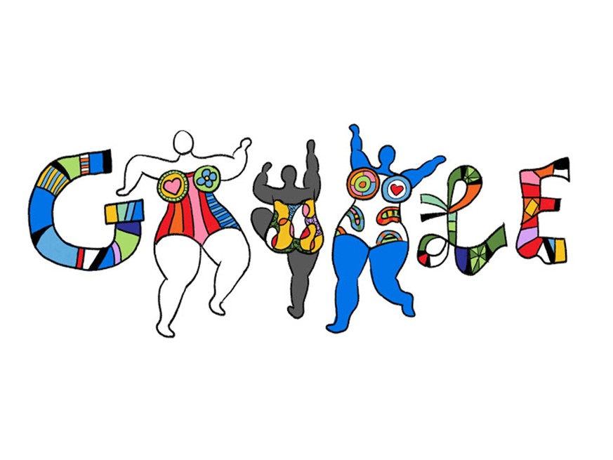 Aber die Dame, deren bunte Tänzerinnen Sie heute alle auf Google sehen, übertrifft die genannten Herren sowieso an Prominenz: Niki de Saint Phalle, die am 29. Oktober 1930 in Frankreich zur Welt kam und 2002 in Kalifornien starb und dazwischen durch ihre Heirat mit Jean Tinguley zur Schweizerin wurde, ist auch heute noch international präsent mit ihren beleibten Engeln (im Zürcher Hauptbahnhof), ihren Brunnen (vor dem Centre Pompidou in Paris) und ihren bunten Frauen, den Nanas. Doch schauen wir zurück auf ein paar Höhepunkte im ersten Jahr der Frauen bei Google:
