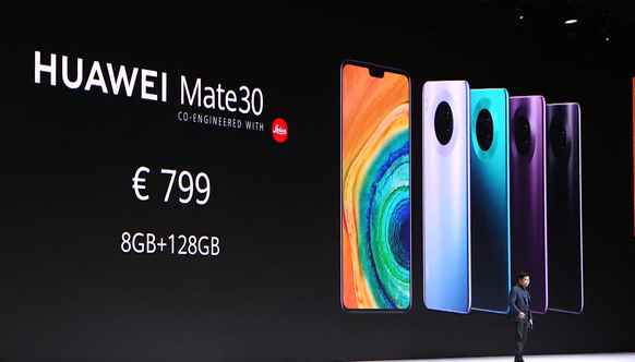 Wie zu erwarten bringt Huawei seine neuen Spitzenmodelle in zwei Varianten und Grössen auf den Markt – vorerst allerdings wohl nur in China, wo die definitiv fehlenden Google-Apps kein Hindernis darstellen. Dabei hat das Pro-Modell eine minim kleinere Display-Diagonale: Während das Mate 30 Pro 6.53 Zoll misst, bringt es das normale Mate 30 auf 6.62 Zoll.
