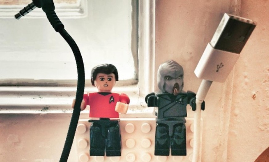 Wenn dir Foldback-Klammern (Nr. 3 bis 6) zu wenig originell sind, wären Legomännchen als Kabelhalter die perfekte Alternative. Am Schreibtisch befestigen kann man die kleinen Helfer mit Sugru-Knete oder Sekundenkleber.