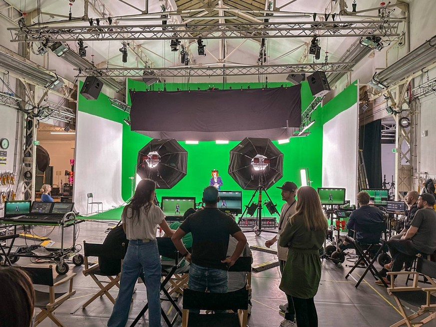 Zwischen den einzelnen Takes muss die Tänzerin nachgeschminkt, das Kostüm gerichtet werden. Jede kleine Stofffalte könnte bei der späteren Digitalisierung zu Problemen führen. Der grüne Hintergrund wird dabei mittels Greenscreen-Technik durch ein digitales Bild ersetzt. Nicht ersetzen lässt sich dagegen die Performance selbst. Sie muss von echten Menschen ausgeführt werden, da nur so der echte Dance-Vibe-Funke überspringt.