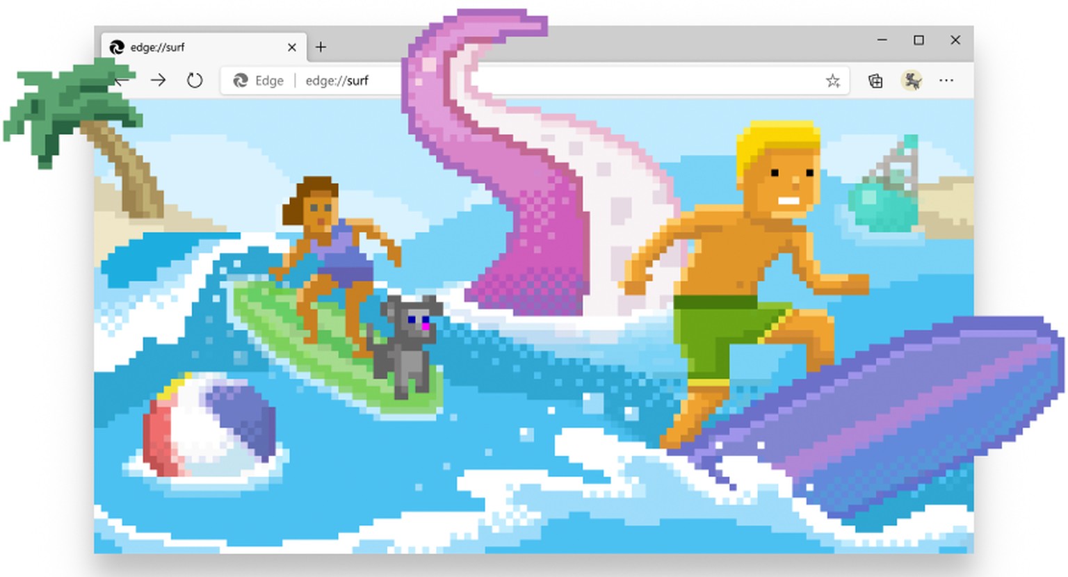 Microsoft neuer Edge-Browser kommt mit einer kleinen Überraschung: Wer in der Adresszeile edge://surf/ eingibt, aktiviert ein «verstecktes» Surf-Spiel, das auf dem Microsoft-Klassiker «SkiFree» von 1991 basiert. Damit man es spielen kann, muss man Edge auf die neue Version 83 aktualisieren.
