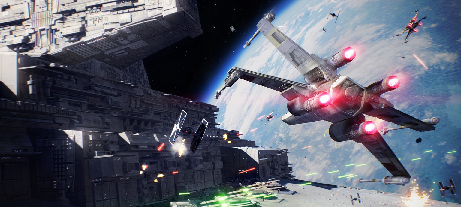 Apropos Luftkämpfe: Wie es sich für ein Star Wars-Game gehört, gibt es natürlich auch hier zünftige Gefechte. Dabei nimmt man beispielsweise in den bekannten Raumschiffen wie X-Wing oder TIE-Jäger Platz und ballert auf alles, was vor das Zielfernrohr fliegt. Das macht Spass. Doch der Schein trügt auch hier. Völlige Luftfreiheit ist fehl am Platz. In Schlauchlevels fliegt man zu einem bestimmten Ziel und muss dies und das wegballern. Hört sich einfach an und ist es auch.