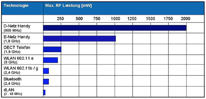 Eine Mobilfunk-Basisstation (GSM) erzeuge selbst in 50 Meter Abstand noch Leistungsflussdichten, die 60'000fach höher seien als die der Powerline-Adapter. Daher sei die Gefahr biologischer Wirkungen bzw. gesundheitlicher Beeinträchtigungen durch Powerline als «extrem gering» anzusehen.