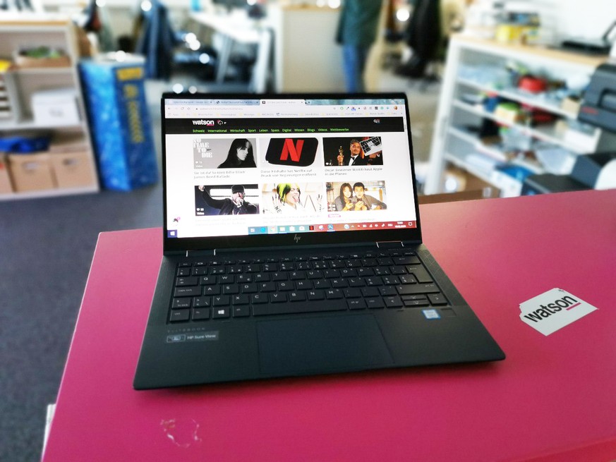 Für einen Business-Laptop ist der Bildschirm aber mehr als ausreichend, zumal HP in zwei anderen Bereichen überzeugen möchte. Zum einen mit der Bildschirmhelligkeit, zum anderen mit einem integrierten Sichtschutz, der von der Marketingabteilung den Namen «HP Sure View» bekommen hat.