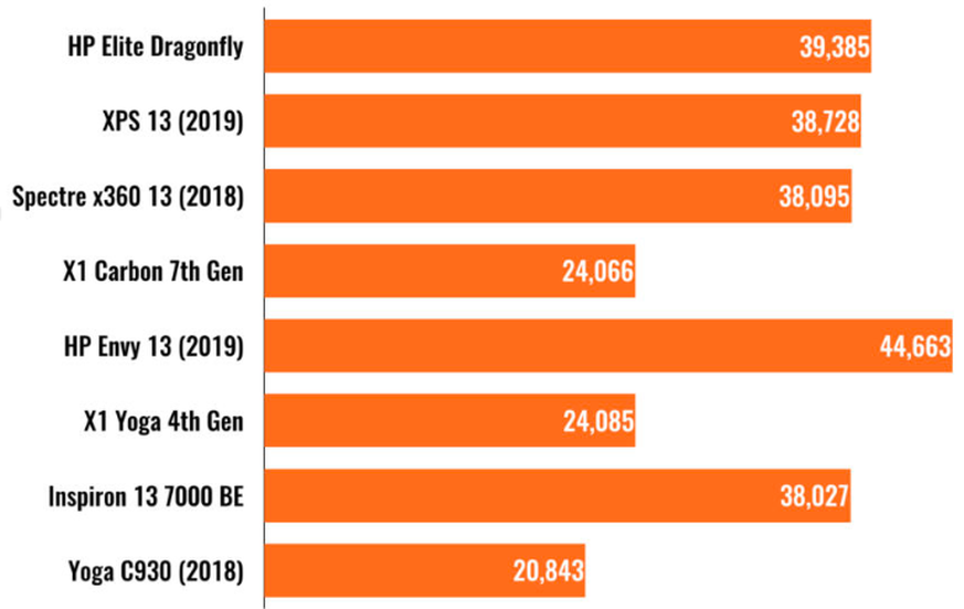 Im Leistungstest (Geekbench 4) des Technikblogs Ars Technica erreichte das Dragonfly im Vergleich mit ähnlichen Modellen einen guten Wert (je höher die Zahl, desto besser):
