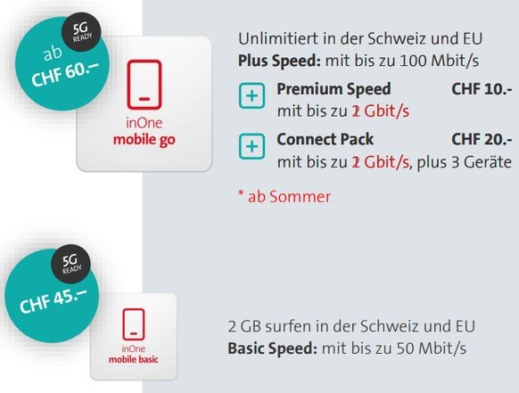 Swisscoms aktuelle inOne-Abos unterstützen das 5G-Netz. Wer die maximale Geschwindigkeit will, muss sich aber eine Premium-Speed-Option für 10 Franken pro Monat dazu erwerben. Wer mehrere Geräte mit voller 5G-Leistung versorgen will, zahlt zusätzlich zum Abo 20 Franken pro Monat. Ob sich dies lohnt, sollte man sich gut überlegen, zumal die Bandbreite auch im 5G-Netz immer auf alle Nutzer in Reichweite einer Funkzelle verteilt wird.