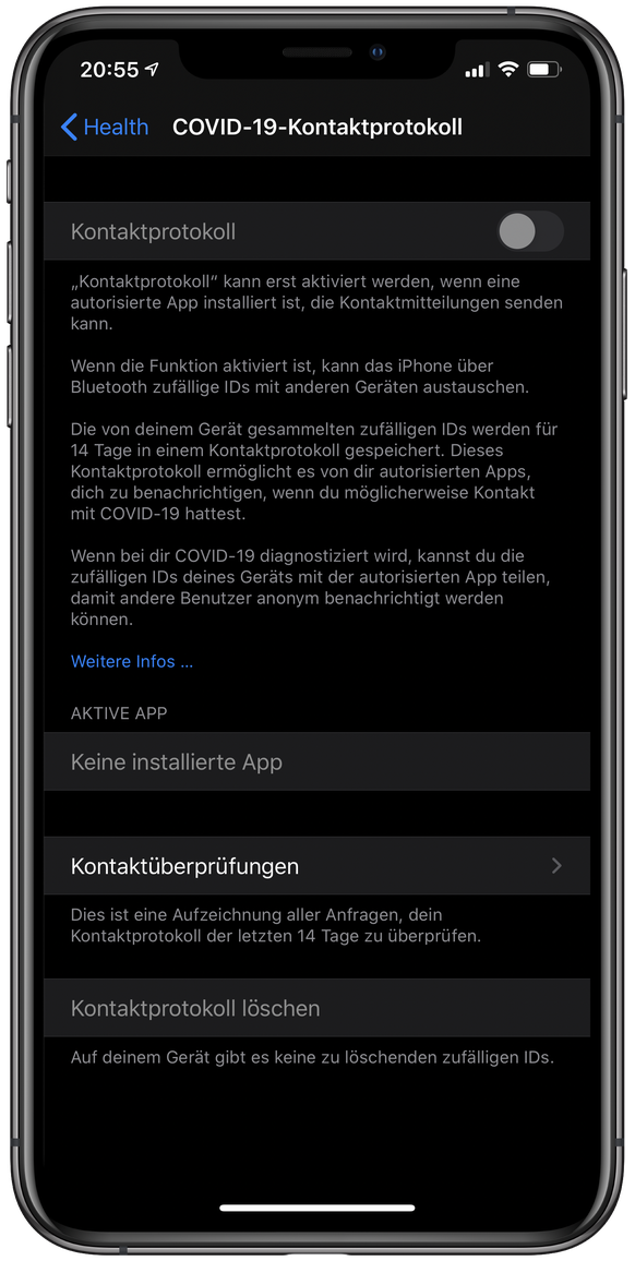 So sieht es aus, wenn auf dem iPhone eine Corona-Warn-App installiert ist: