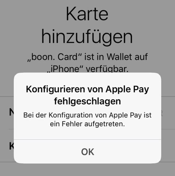 Das Einrichten der Boon-App auf dem iPhone funktionierte bei mir problemlos und war in einer knappen Viertelstunde erledigt. Beim Aktivieren von Apple Pay fürs iPhone resultierte zunächst eine Fehlermeldung, beim zweiten Versuch klappte es.