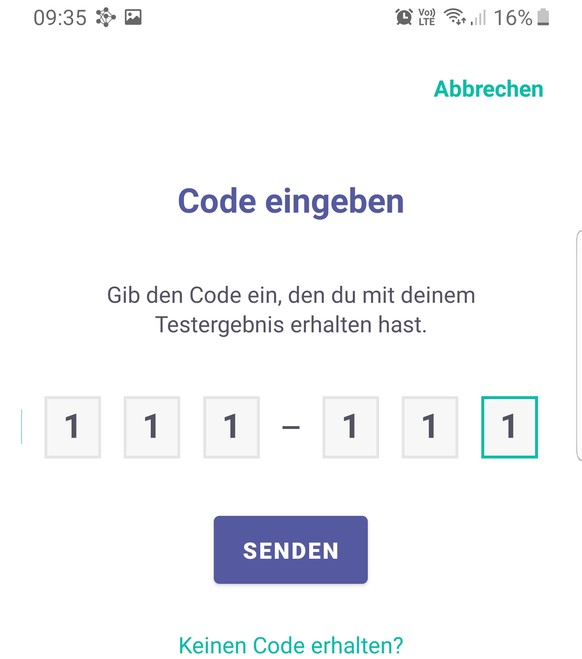 Damit man keine Juxwarnungen verbreiten kann, bekommt man mit dem Corona-Testergebnis einen einmaligen Code, um die Erkrankung in der App zu melden (so ist es zumindest in der Testversion angedacht). In der Test-App funktioniert diese Verifizierung anscheinend noch nicht, d. h. man kann derzeit einen beliebigen Code eingeben.