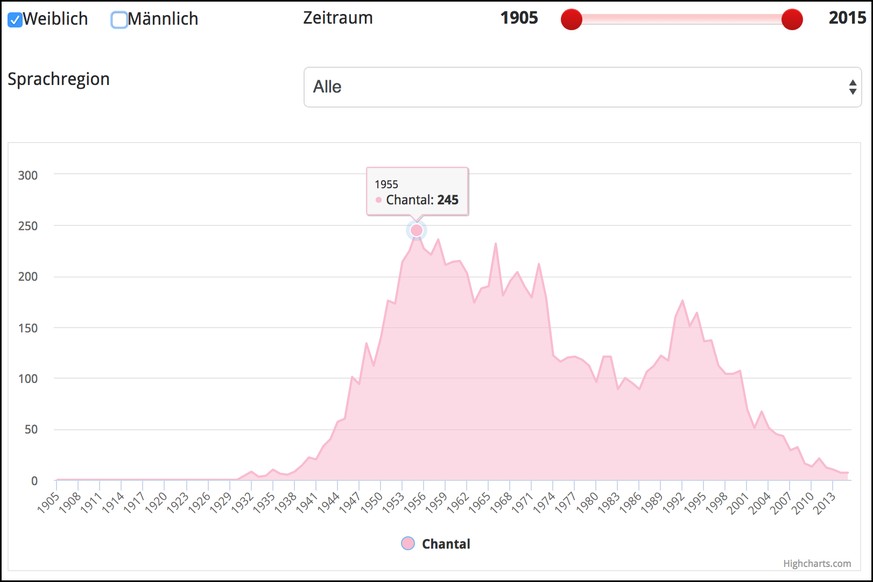 - Die Statistik berücksichtig laut den Machern nur die ersten 1000 Vornamen (Rang) mit mindestens einer Beobachtung pro Vorname in einer Sprachregion.
