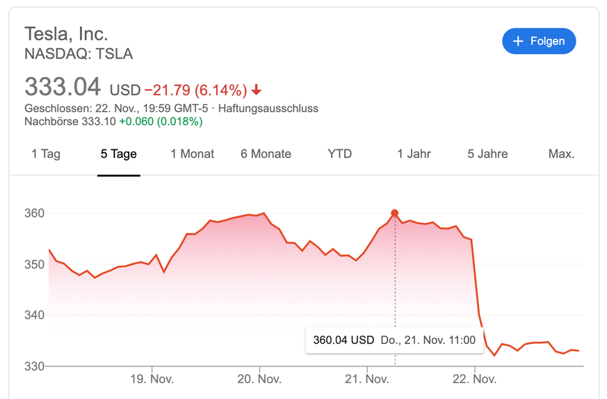 Zwei Börsentage später hat sich die Situation beruhigt. Die Tesla-Aktie ist im Vorbörsenhandel um fast 4 Prozent gestiegen. Wohl auch wegen der vielen Vorbestellungen.