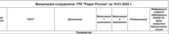 Der Covid-19-Impfstatus der Mitarbeitenden: Beim Sender Radio Russland waren demnach im Januar 2022 von rund 400 Angestellten nur sieben ungeimpft.