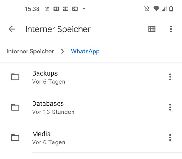 - Eine Liste aller WhatsApp-Unterordner erscheint.