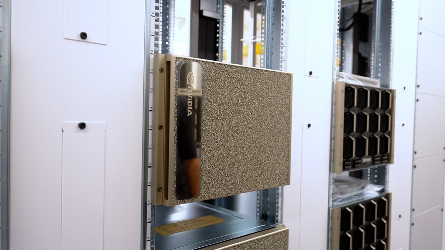 Die Module von Nvidia haben es aber in sich: Jedes sei 130 Kilogramm schwer und habe mit einem kleinen Kran ins Servergestell gehoben werden müssen, sagte der Leiter des Rechenzentrum bei einer Führung.