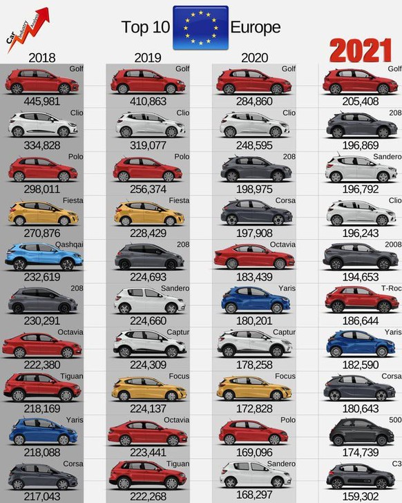 Die erfolgreichsten Autos in Europa von 2018 bis 2021
