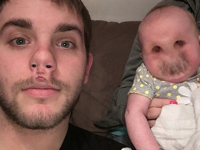 Nein, das ist KEIN Männer-Po, der sich über ein Baby beugt